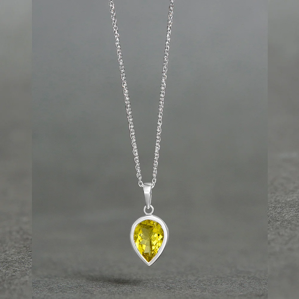 This delicate pendant features a pear cut cubic zircon encased in a smooth, polished bezel setting for a clean and timeless look.