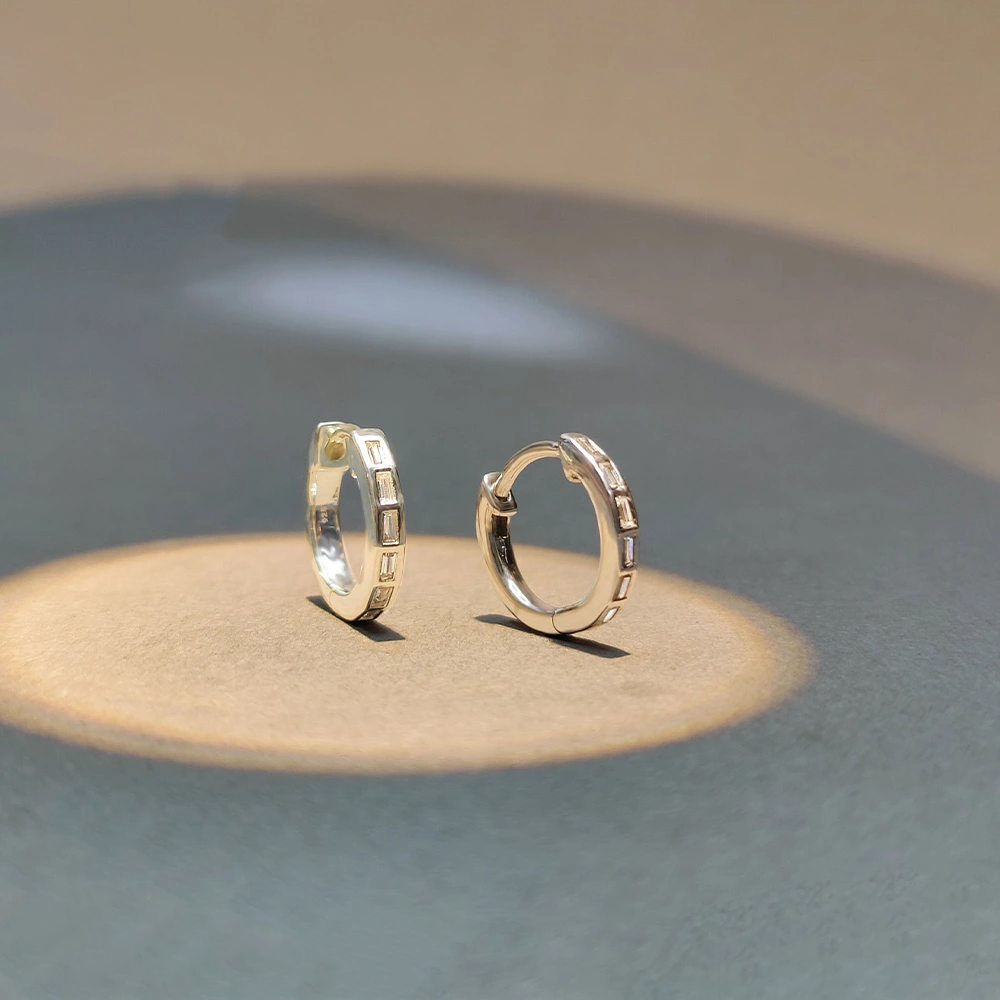A Classic hoop with Baguette cubic zircons , placed geometrically giving it clean and fine look.