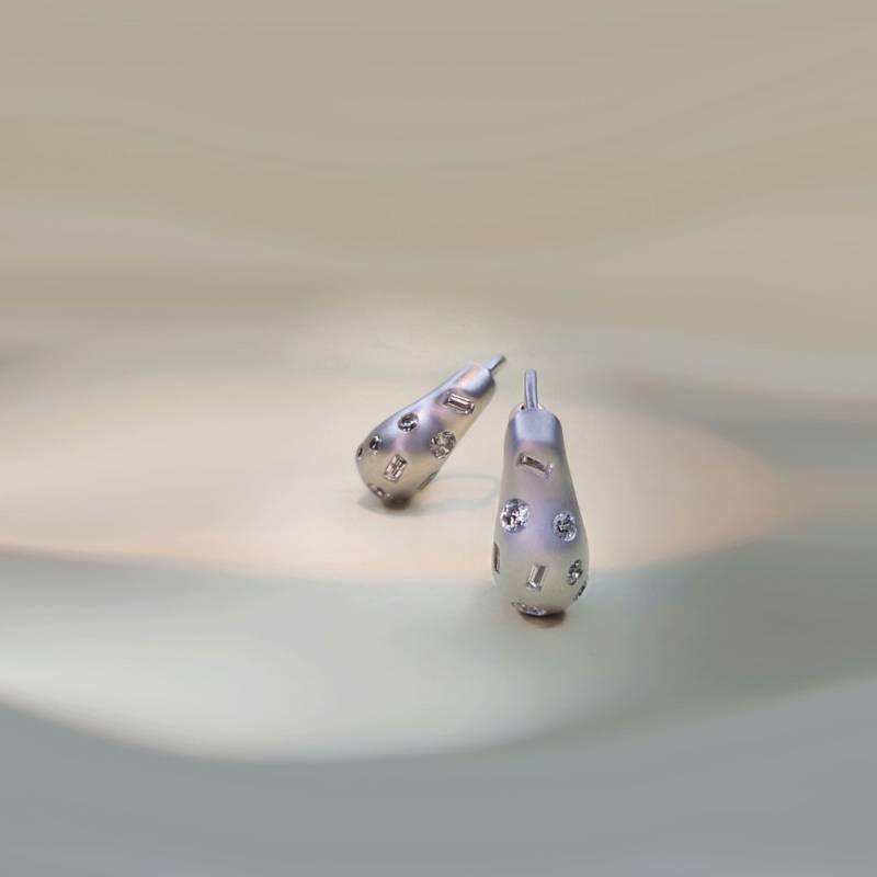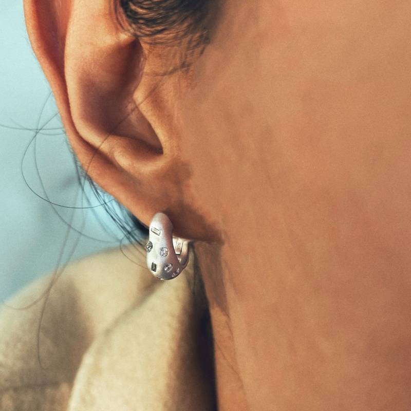 Sterling Silver Organic Earring Studded With Cubic Zirconia