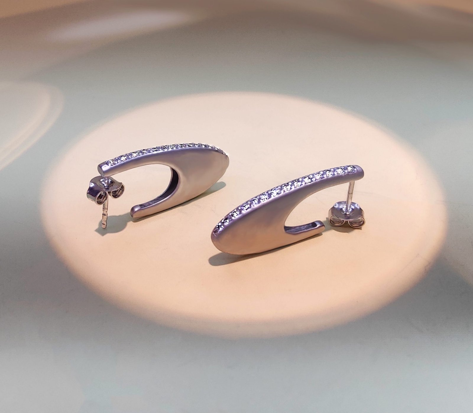 Architecture Inspired Convex Earring, Sterling Silver Earring, Rhodium Plated With White Cz